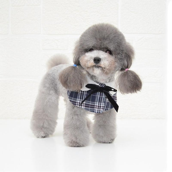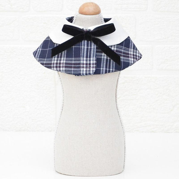Navy Blue Grid Dog Shawl L (25-30cm Neck) - Bow Tie & Bib