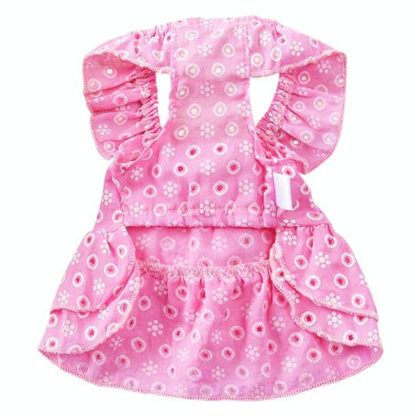 Dress your pampered pooch in this adorable pink lace princess dress, perfect for spring and summer. Crafted from lightweight, breathable cotton, this charming dog dress ensures your furry friend stays cool and comfortable during warmer weather. The soft, pill-resistant fabric and boneless sewing provide ultimate comfort, while the plant-based dyes are gentle on sensitive skin. Available in size medium (M), this pretty pink dress is suitable for small dogs and cats. For sizing details, please see our size guide. Search keywords: dog dress, summer dog clothes, pet clothing, princess dress for dogs, pink dog dress, small dog clothes, breathable dog clothes, lightweight dog clothes, cat dress.