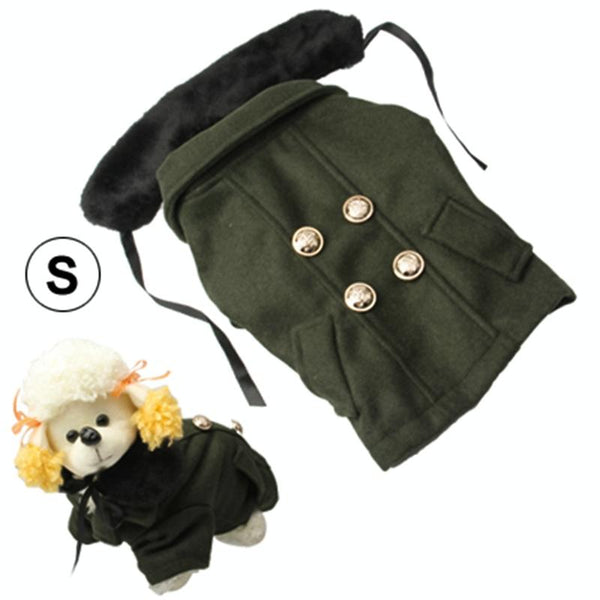 Keep your canine companion cosy and stylish this season with our gorgeous deep green woollen dog coat. This size small coat, featuring a luxurious fur collar, is perfect for adding a touch of elegance to your dog's winter wardrobe. Crafted from high-quality woollen cloth, this coat offers superior warmth and comfort. Ensure the perfect fit by measuring your dog's chest and selecting a size at least 1 inch larger than their measurement. For size small, the neck girth is 25cm, chest girth is 36cm, and body length is 25cm. Easy to wear, this fashionable dog coat is a must-have for any discerning dog owner.
