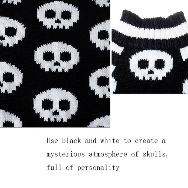 Dress your furry friend in this spooky-cute Halloween Skull Pet Sweater. This black and white skull design creates a mysteriously stylish look perfect for Halloween parties, trick-or-treating, or spooky season photoshoots. Crafted from soft, smooth acrylic, this comfortable sweater offers micro-elasticity and a snug fit to keep your pet warm. Available in sizes XXS to XL, ensuring a purrfect fit for cats and dogs alike. Please consult our size chart below to find the ideal fit for your pet: