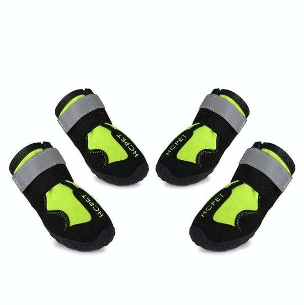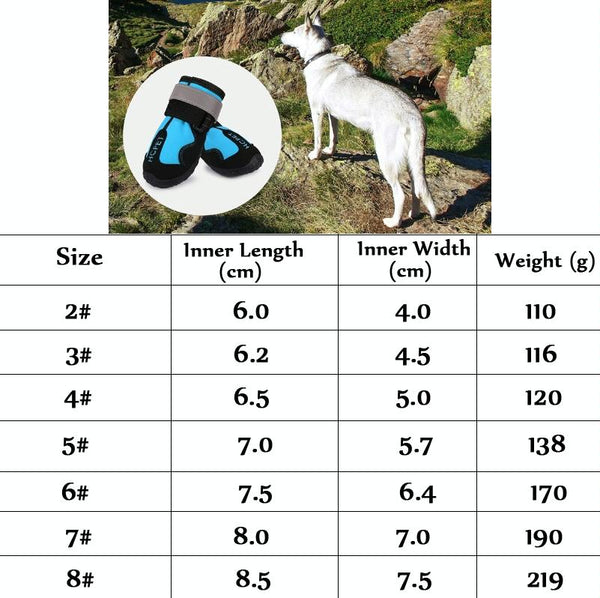 Protect your dog's paws with these size 7 (Green) HCPET Non-Slip, Wear-Resistant Dog Rain Boots. Made from durable fabric and rubber, these waterproof dog shoes offer superior comfort and protection for outdoor adventures. The deep-treaded soles provide excellent grip on slippery surfaces, while the soft interior ensures a comfortable fit. These boots stay securely on your dog's paws thanks to strong nylon yarn and a snug design. Built to last, these long-lasting boots are resistant to fraying and offer exceptional durability. Size 7 boots have an inner length of 8.0 cm and an inner width of 7.0 cm. Four boots weigh 199 grams.