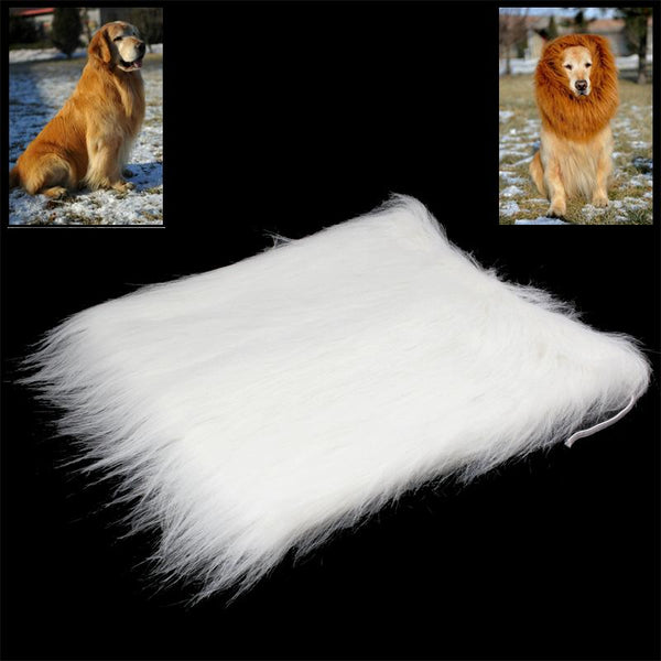 Large Dog Lion Mane Wig Costume, White, Fits Neck Up to 70cm