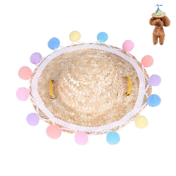 Pet Straw Dragonfly Hat with Windmill - Cat & Dog (S)