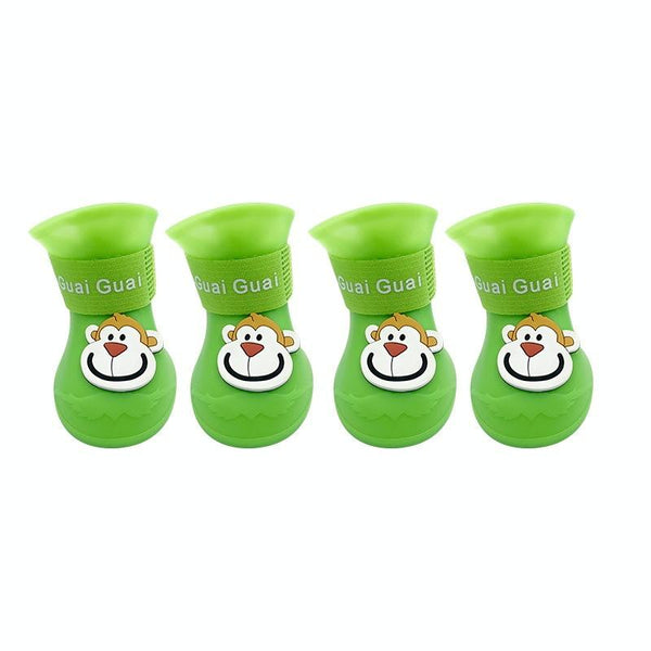 Waterproof Dog Rain Boots, Silicone, Non-Slip, Green, Size M