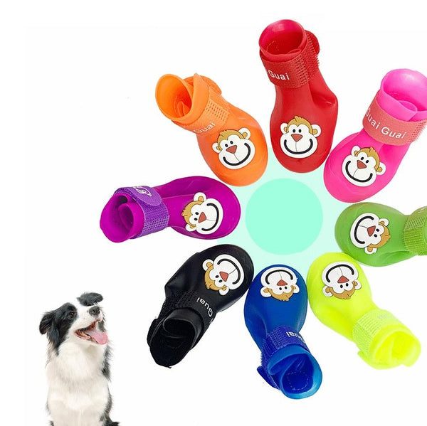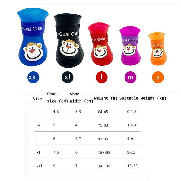 Protect your furry friend's paws with these adorable cartoon silicone rain boots. Made from durable, waterproof PVC, these XL green boots offer superior protection against rain, snow, and cold pavements. The non-slip sole provides excellent grip, preventing slips and falls, while the clever adhesive design ensures a secure fit. These one-piece moulded boots are tough enough for everyday wear, helping to prevent heel sprains and ensuring a comfortable landing with every step. Suitable for dogs weighing between 9-15kg, these XL boots measure 7.5cm in length and 6cm in width. Keep your dog's paws clean, dry, and stylish with these practical and playful rain boots.