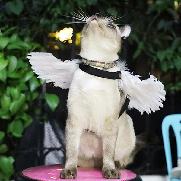 Transform your beloved pet into a celestial creature or a mischievous devil this Christmas or Halloween with these adorable feather wings. Crafted with lightweight materials including goose feathers, hard paper, and soft nylon webbing, these wings are comfortable for your furry friend to wear. The adjustable hook and loop fastener ensures a secure and custom fit for small pets (size S, 40g). The cleverly designed hard paper backing allows for gentle wing movement, adding a touch of realism to their festive costume. Please note, as these wings are lovingly handmade, slight variations may occur.