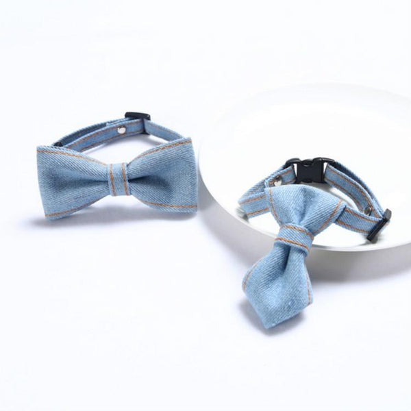 Stylish Denim Bow Tie Collar for Cats & Dogs