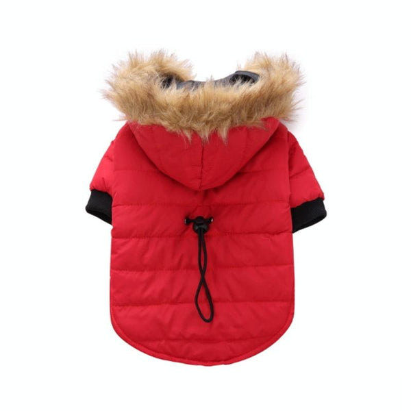 Warm Fleece Dog Coat with Hood - Red, Size L