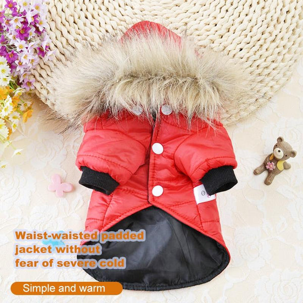 Small Dog Winter Coat with Fur Hood - Green (S)