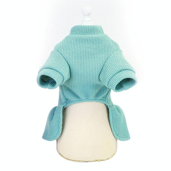 Keep your furry friend cosy and stylish with this adorable green pet skirt, perfect for Pomeranians, Bichons, and other small breeds. Crafted from soft Odell fabric with a warm plush backing, this XL dog skirt offers ultimate comfort. The relaxed round neck ensures a snug yet non-restrictive fit. For the perfect fit, allow 3-5cm of extra space around the chest. Suitable for pets weighing between 1.25kg and 8kg.