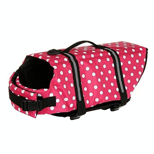 Keep your canine companion safe and visible with the Pet Saver Dog Life Vest in a stylish pink dot design. This size small life jacket is perfect for adventurous dogs with a chest measuring 41-48cm, neck 30-38cm, and back length of 25cm. Reflective stripes ensure high visibility in low light conditions, making it easy to spot your dog during water activities. The breathable mesh fabric allows for quick drying and comfortable wear, while the secure hook and loop fastener straps provide a snug and adjustable fit. Ideal for swimming, boating, surfing, and other water-based adventures, this life vest offers peace of mind and essential buoyancy for your beloved pet.