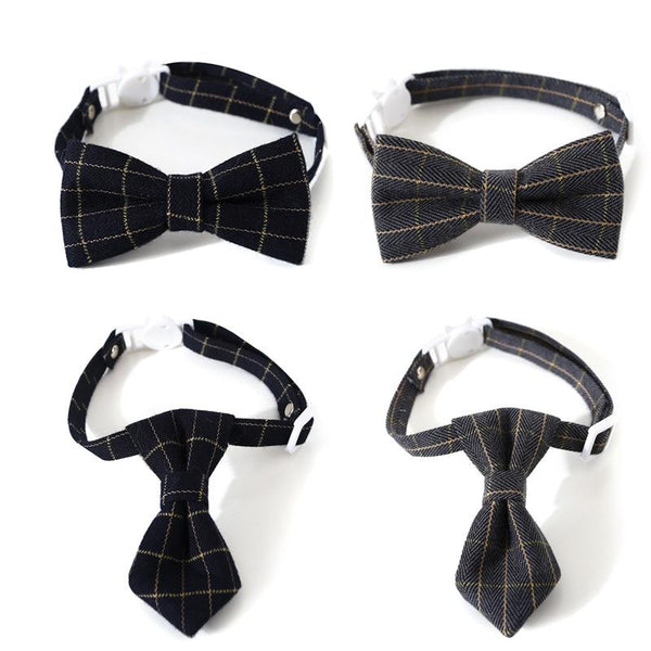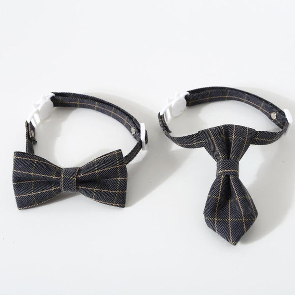 Grey Cat & Dog Bow Tie Collar, Adjustable S (17-32cm)