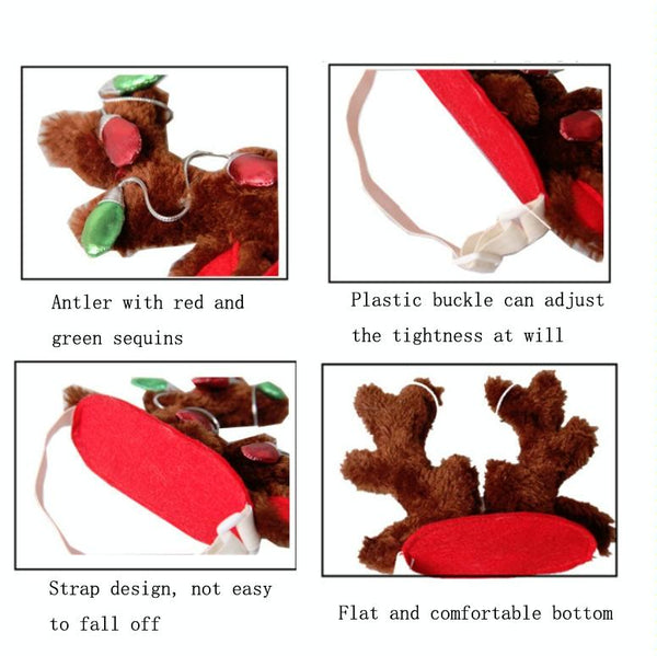 Sequinned Antler Christmas Puppy Hat, S (10-18cm) - Cat/Dog