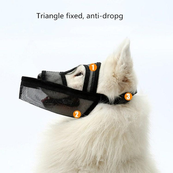 Dog Muzzle, Grey, Size L, Long Snout Breeds, Breathable Mesh