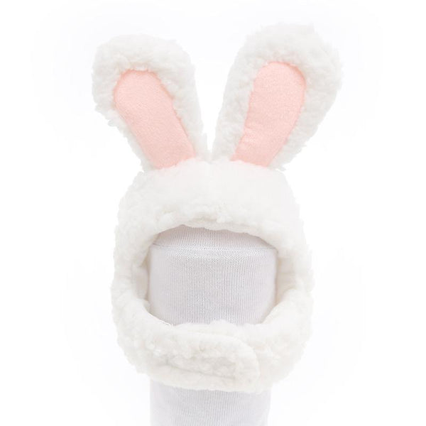 White Rabbit Cat Hat XS (19-24cm) - Soft Velvet Pet Costume