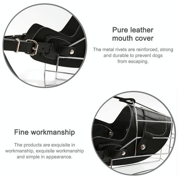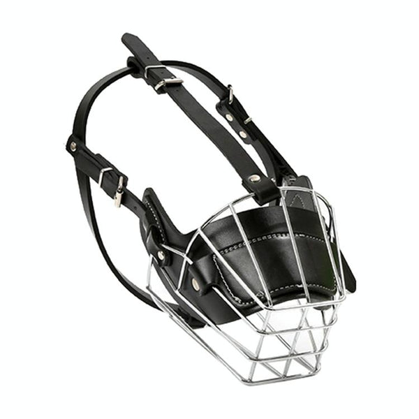 XL Steel Cage Dog Muzzle - Breathable, Secure Fit, Leather Strap