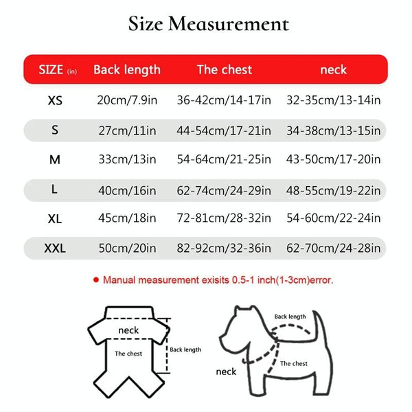 Size | Back Length (cm) | Chest (cm) | Neck (cm) |