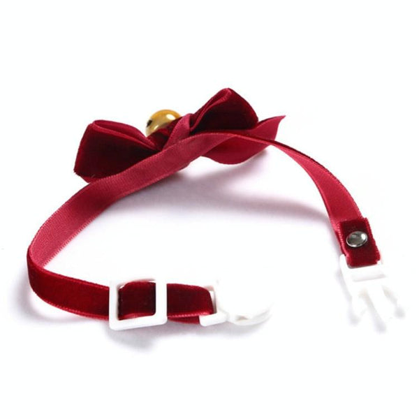Velvet Bow Collar for Cats, Dogs & Rabbits (S, 17-30cm, Bean Paste)