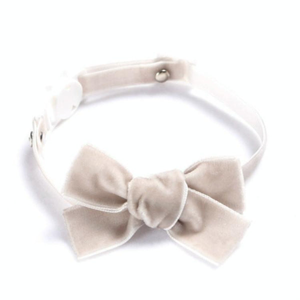Velvet Bow Collar for Cats, Dogs & Rabbits - Grey - Small (17-30cm)