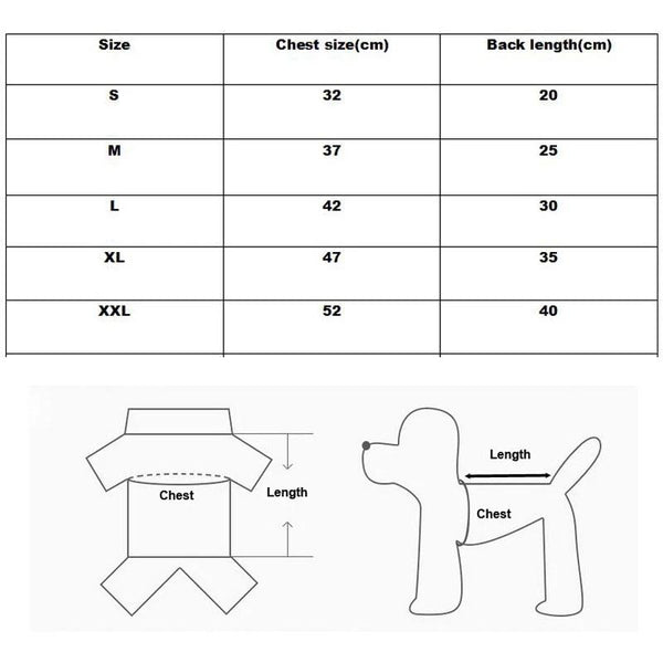 - XL: Back length 35cm, Chest 48cm (Suitable for small pets of 9 to 10kg)