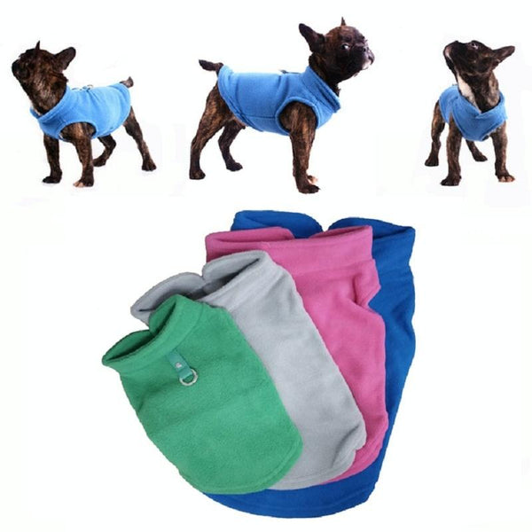 Warm Fleece Dog Coat, Purple, L, for French Bulldogs & Pugs