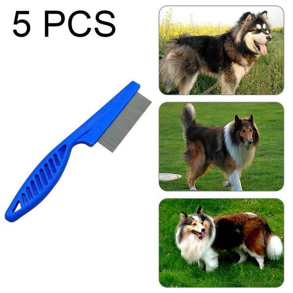5x Pet Flea Combs, Fine Tooth Steel, Blue, 18.5cm, Cats & Dogs