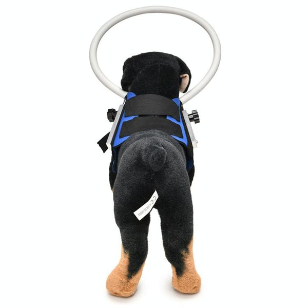 Protect your visually impaired dog with this lightweight and comfortable Anti-Collision Ring. This halo-like device acts as a bumper, gently alerting your dog to obstacles and preventing injuries. The padded ring, made from durable aluminium strip, SBR, and foam, provides a safe and comfortable experience. The adjustable collar and chest straps ensure a perfect fit for small dogs (4-10kg) with the size small (22cm diameter ring) weighing only 300g. Give your furry friend the confidence to navigate their surroundings safely and independently.