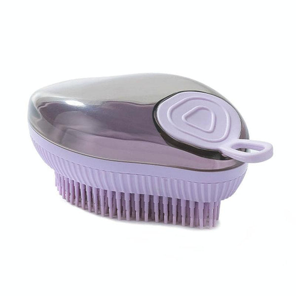 Pet Shower Brush with Shampoo Dispenser, Purple - Cat & Dog Massage