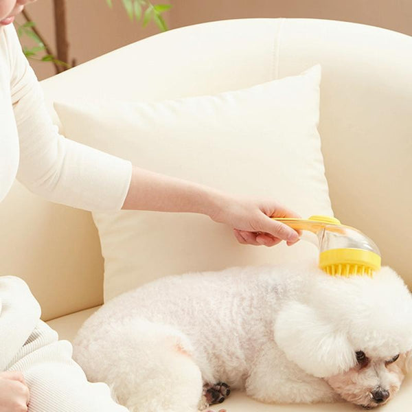 Effortlessly groom your furry friend with the Long Handle Pet Bathing Brush. This silicone dog and cat cleaning brush features soft, coarse teeth that gently yet effectively remove dirt and loose hair without irritating sensitive skin. The integrated shampoo dispenser allows for even distribution and fast foaming, ensuring a deep clean every time. The transparent reservoir lets you monitor shampoo levels, while the ergonomic long handle provides a comfortable grip, reducing wrist strain. The built-in hanging loop makes storage and drying a breeze. Suitable for both wet and dry use, this massage brush promotes healthy skin and a shiny coat. Approximate size: 18 x 7.5 x 7cm. Weight: approximately 103g.