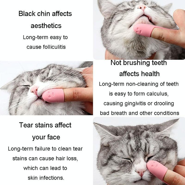 Keep your furry friend's chin and teeth sparkling clean with this gentle silicone pet cleaning brush. The soft, flexible design features 3mm soft dots that effectively remove dirt, blackheads, and food residue, promoting good oral hygiene for both cats and dogs. The long finger sleeve ensures a secure grip, allowing you to comfortably reach tricky areas like the chin. Made from durable, non-deformable silicone, this brush is easy to clean and built to last. Approximate size: 10 x 2.5 cm. Weight: approximately 10g. Ideal for cats and dogs.
