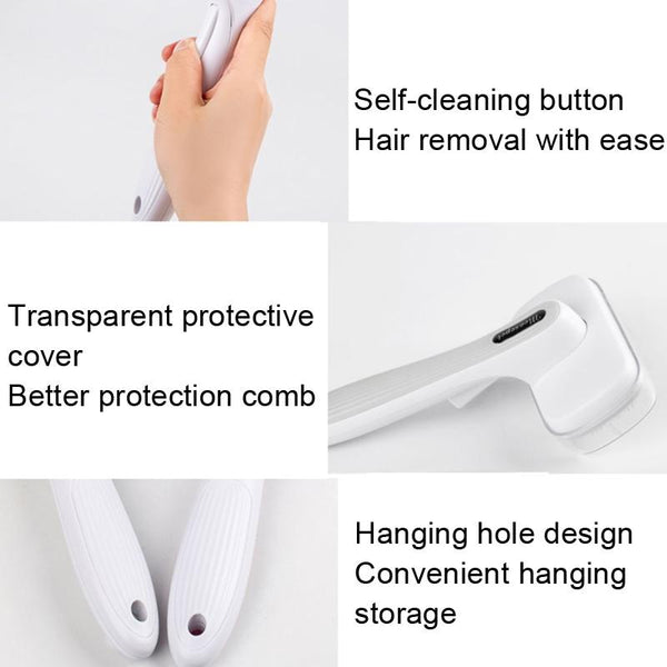 Effortlessly groom your furry friend with this self-cleaning slicker brush. Featuring fine bent wire bristles, this pet comb gently removes loose hair, mats, and tangles from cats and dogs with both long and short coats. The comfortable, ergonomic handle with a non-slip grip makes grooming a breeze, while the one-click cleaning button ejects trapped fur for easy disposal. A protective cover keeps the bristles clean and safe between uses. Made from durable, eco-friendly ABS and TPR materials, this pink grooming brush is designed for long-lasting use. Approximate size: 19.5 x 10.7 x 5.8cm. Weight: approximately 220g.