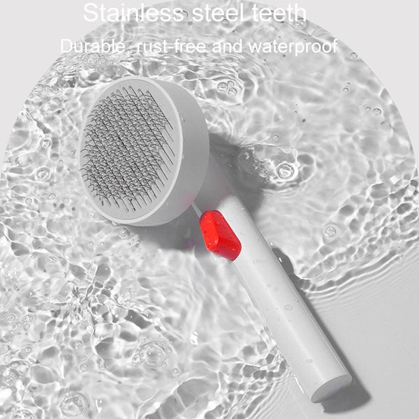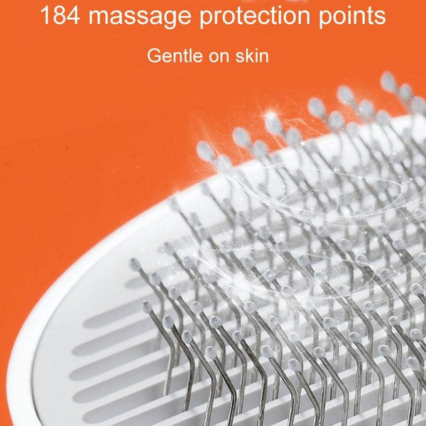 Effortlessly groom your cat or dog with the Pets Knotting and Thinning Needle Comb in pink. This de-fluffing comb gently removes loose hair, mats, and tangles without irritating your pet's skin. Featuring 184 massage protection points and 140-degree curved, anti-static comb teeth, it provides a comfortable grooming experience for both you and your furry friend. The one-click cleaning button makes removing collected hair quick and easy, while the ergonomic handle ensures comfortable use, even during extended grooming sessions. Made from durable ABS, HTPE, and stainless steel, this comb is built to last. Suitable for all breeds of cats and dogs. Approximate size: 199.5 x 79 x 67.5mm. Weight: approximately 100g.