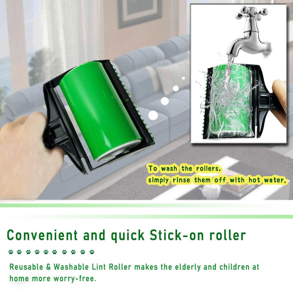 Reusable Sticky Lint Roller - Washable Pet Hair Remover (Green)