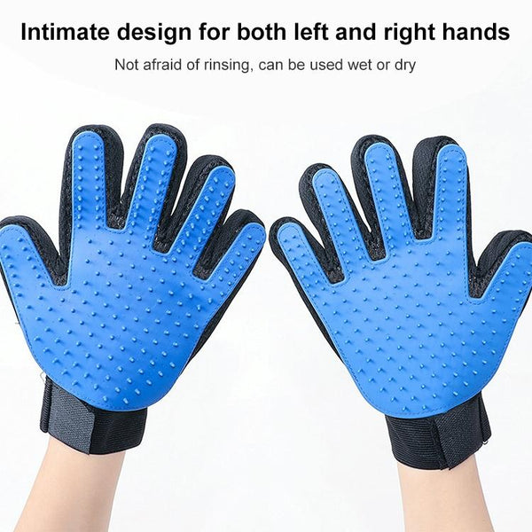 Cat Grooming Glove, Left Hand, Blue - Rubber Brush for Deshedding