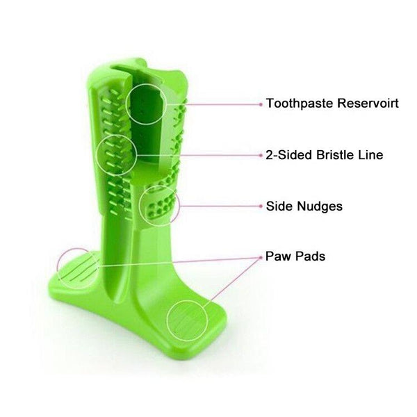 Keep your dog's teeth clean and healthy with this fun, S-sized green rubber molar stick toothbrush. Designed for small dogs, this chew toy toothbrush makes dental care enjoyable. The textured, angled surfaces clean teeth down to the gum line while the built-in toothpaste reservoir automatically dispenses toothpaste with each chew. Made from natural, chew-safe rubber, it features a stable base for easy holding. Simply let your dog chew for 10 minutes at a time for effective cleaning. Encourage daily dental hygiene and make teeth cleaning a positive experience for your furry friend.