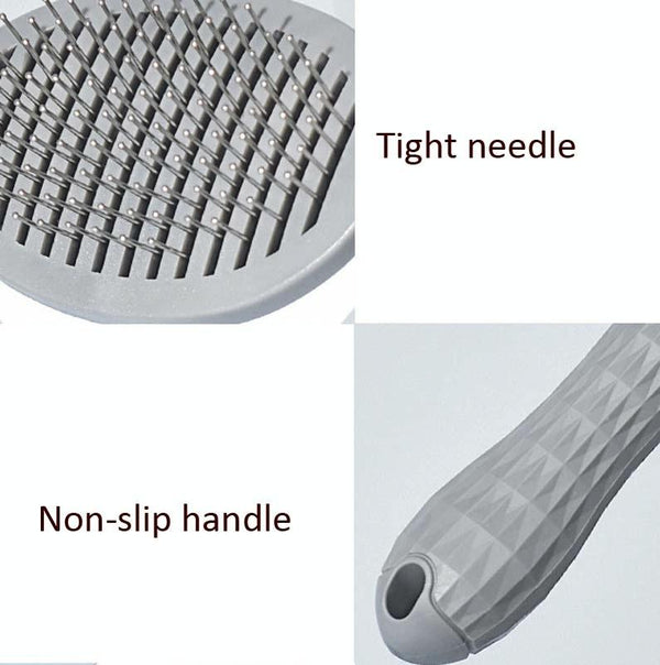 Effortlessly groom your furry friend with this Stainless Steel Needle Automatic Cleaning Pet Hair Removal Dog Brush. Suitable for both cats and dogs, this durable brush features a 5cm wide, 9cm long comb head with 60-degree angled stainless steel needles for gentle yet effective grooming. The innovative one-button cleaning mechanism allows for quick and easy hair removal – simply press the button and the collected fur is released. This pet comb not only detangles knots but also provides a comfortable massage, promoting a healthy and shiny coat. Dimensions: 19.5cm x 10.5cm. Made from high-quality ABS/TPR and stainless steel for long-lasting use.