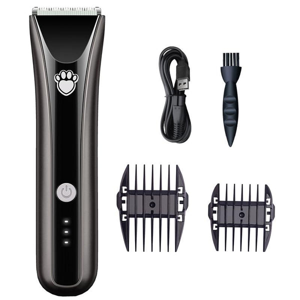 Effortlessly groom your pet at home with the Waterproof Pet Shaver Dog Electric Hair Clipper. This IPX7 waterproof clipper makes bath-time trims easy and clean-up a breeze. The powerful 5W motor and sharp, durable ceramic blade with 30 stainless steel teeth deliver a smooth, quick cut, while the low-vibration, quiet operation keeps your furry friend calm and comfortable. Two limit combs offer versatile grooming options, and the long-lasting 1500mAh battery provides up to 260 minutes of cordless runtime on a single 3-hour charge via USB. Choose from various packages to suit your grooming needs, with options including extra blades, nail care tools, and even a pedicure head for complete pet pampering.