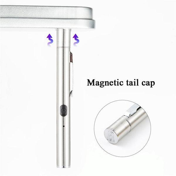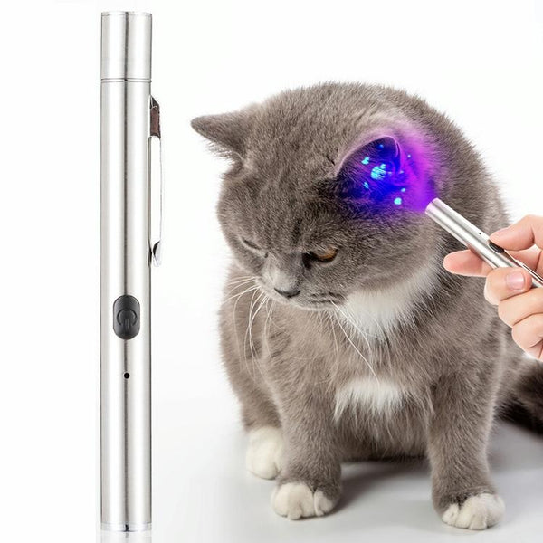 Quickly and easily detect pet urine stains, ringworm, and other fungal infections with this portable Woods Lamp. The 365nm ultraviolet light reveals hidden stains invisible to the naked eye, making cleaning and treatment more effective. This versatile UV torch also has practical applications beyond pet care, such as identifying counterfeit currency, authenticating documents, detecting fluorescent agents, and even checking for scorpions. Crafted from durable stainless steel with a magnetic tail cap and convenient pen clip, this rechargeable Woods Lamp is perfect for home, professional, and on-the-go use. Features a built-in 200mAh rechargeable lithium battery and USB charging for ultimate convenience.