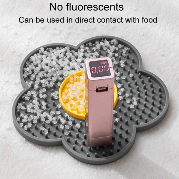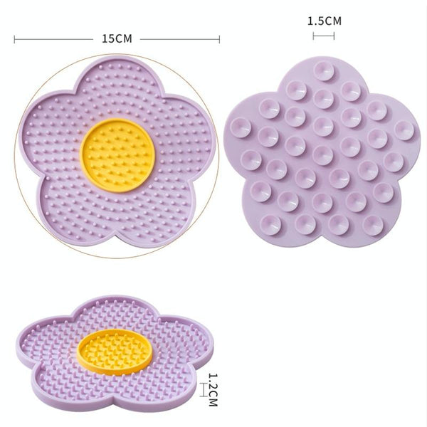 Soothe and entertain your cat or dog with this 15cm blue sunflower-shaped silicone licking mat. Featuring 31 suction cups, this slow feeder securely attaches to tiles, glass, and other smooth surfaces, promoting healthier eating posture and reducing strain on your pet's neck and spine. Made from food-grade silicone free from fluorescent agents, this lick mat is safe for direct contact with food and can be used in the microwave and freezer. The textured surface design slows down eating, reducing choking hazards and improving digestion. Easy to clean and dishwasher safe, this durable and flexible mat is perfect for spreading wet food, yoghurt, or other treats. Approximate size: 15cm diameter x 1.5cm depth. Weight: approximately 76g.