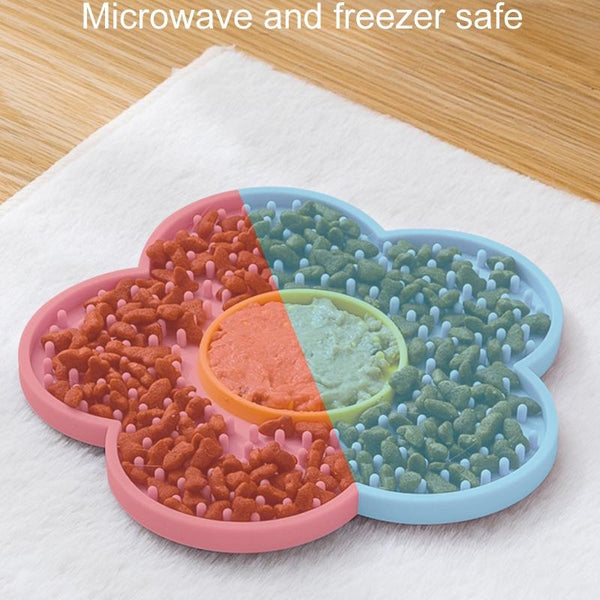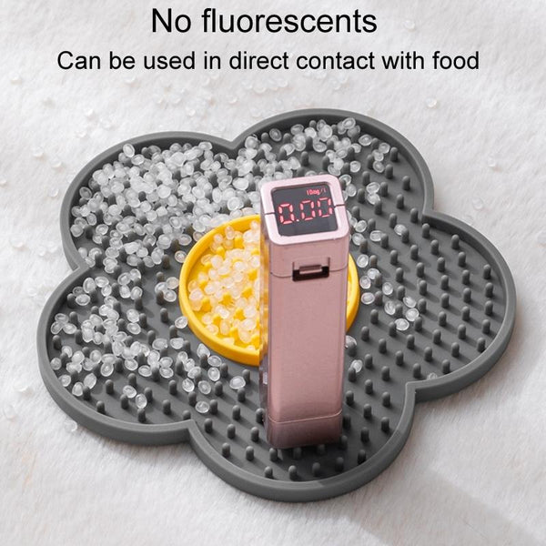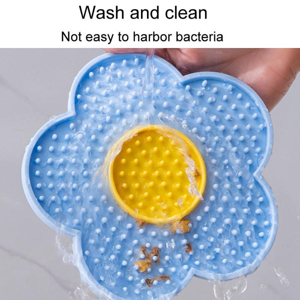 Soothe and entertain your cat or dog with this 15cm purple sunflower-shaped silicone licking mat. Featuring 31 suction cups, this slow feeder securely attaches to tiles and other smooth surfaces, promoting a healthier eating posture and reducing strain on your pet's neck and spine. Made from food-grade silicone free from fluorescent agents, this lick mat is safe for direct contact with food and easy to clean, preventing bacterial growth. The textured surface design slows down eating, reducing choking risks and improving digestion. Durable and versatile, this mat is microwave and freezer safe, withstanding both high and low temperatures. Its soft, flexible material resists deformation, providing long-lasting use. Perfect for spreading wet food, yoghurt, or peanut butter, this lick mat provides a stimulating and enriching experience for your furry friend. Approximate size: 15 x 15 x 1.5cm. Weight: approximately 76g.
