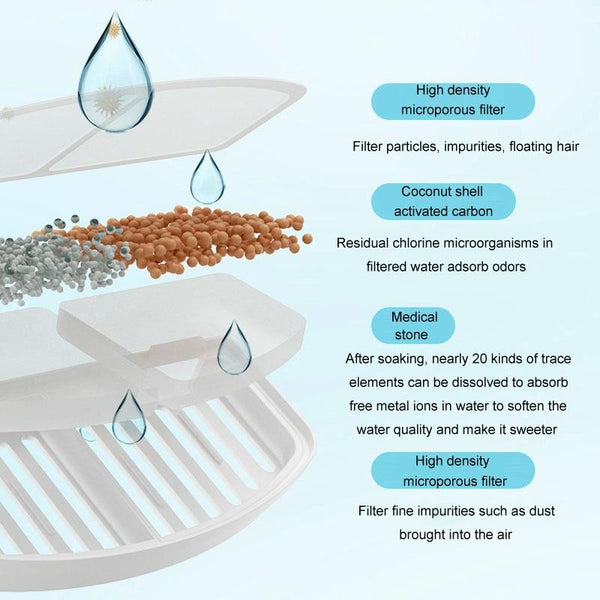Keep your furry friend happy and hydrated with this 2.2L Automatic Pet Water Dispenser, perfect for cats and small to medium-sized dogs. This intelligent water feeder features a streamlined design with a generous 2.2L water tank and 80ml tray capacity, ensuring a constant supply of fresh, filtered water. The four-layer filtration system softens water and removes impurities, helping to prevent urinary tract issues. The quiet operation ensures peaceful sleep for both you and your pet, while the non-slip base and suction cup feet keep the dispenser securely in place. Easy to clean with a simple rinse, the one-piece, replaceable filter cartridge makes maintenance a breeze. Includes dispenser, filter, cotton filter, USB cable, and instruction manual. Dimensions: 243 x 168 x 134mm. Weight: 510g.