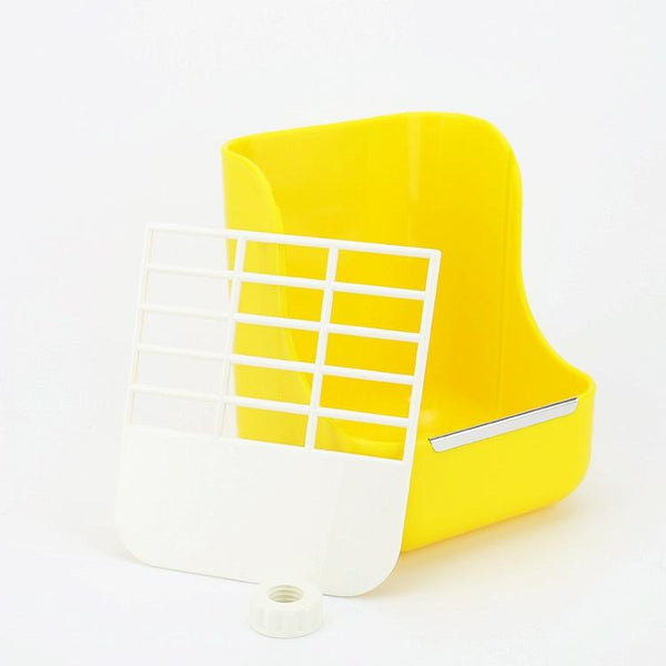 Keep your rabbit or guinea pig happy and well-fed with this 2-in-1 Food Basin Frame. This versatile feeder features a dual-purpose design, perfect for dispensing both hay and pellets. The large opening allows for easy refilling, while the stainless-steel anti-bite edge ensures durability and prevents gnawing damage. Securely fix the feeder to your pet's cage with the easy-to-use knob. Made from durable plastic and stainless steel, this feeder is approximately 15 x 15 x 18 cm and weighs just 33g. rabbit guinea pig food bowl feeder hay rack cage accessory pet supplies small animal