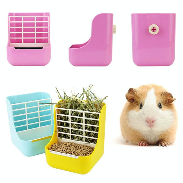 Rabbit Guinea Pig Food Bowl & Hay Rack - Pink