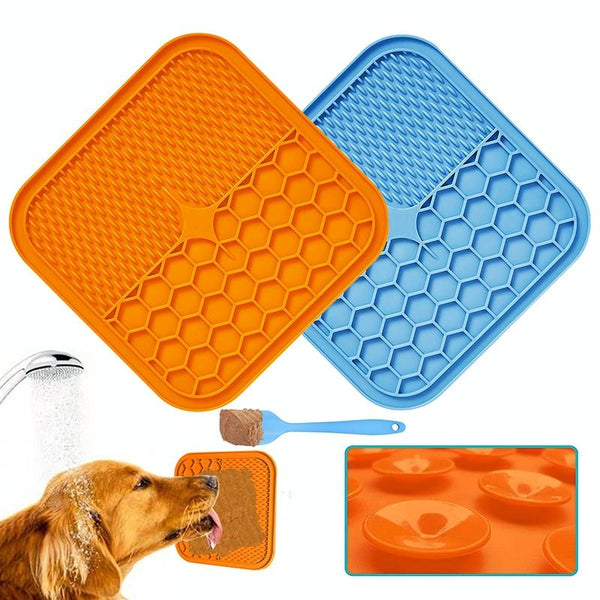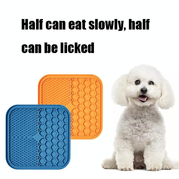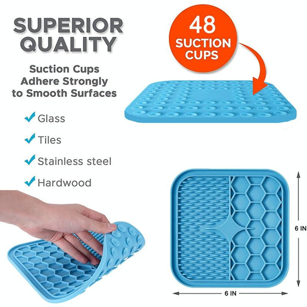 Soothe and distract your furry friend with the A012 Silicone Pet Sucker Licking Pad. This slow feeder bowl, available in Small (Orange), promotes calmer mealtimes by reducing gulping and choking. Made from durable, pet-safe silicone, it features powerful suction cups (48 on the small size) that securely attach to any smooth surface, like tiles, glass, or floors. Perfect for spreading peanut butter, yoghurt, or other tasty treats, this lick mat keeps pets entertained and engaged, reducing anxiety and boredom. Measuring 15x15x1cm and weighing just 98g, it's perfectly sized for smaller dogs and cats. Upgrade your pet's mealtime experience with this innovative and practical licking pad.