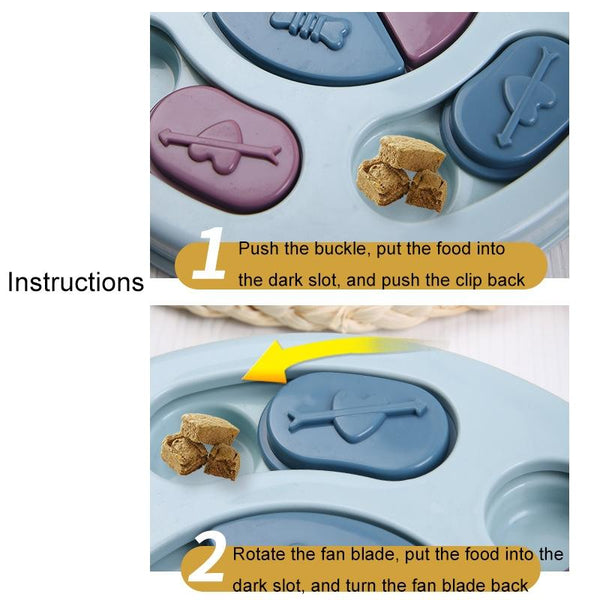 Slow down speedy eaters and stimulate your furry friend's mind with this interactive Cat and Dog Feeding Plate in vibrant blue. Made from durable, bite-resistant plastic, this slow feeder bowl features a non-slip base to prevent spills and keep mealtimes tidy. The smooth, polished surface is gentle on delicate noses and paws. Hidden compartments and a rotating fan blade challenge your pet to uncover their food, promoting slower eating, reducing bloating, and improving digestion. Suitable for both cats and dogs, this engaging feeder transforms mealtime into a fun and rewarding game. Simply push the buckle or rotate the fan blade to hide kibble or treats within the compartments. Dimensions: 25 x 28 x 4cm.