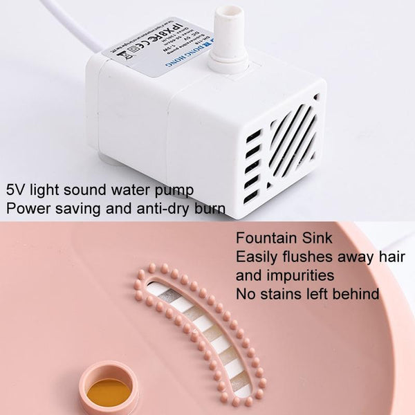 Keep your cat happy and hydrated with this automatic water dispenser. The 2.2L capacity provides plenty of fresh, filtered water, reducing the need for frequent refills. The circulating water feature encourages your cat to drink more, promoting better hydration. The low-noise pump operates quietly, ensuring undisturbed sleep for both you and your furry friend. Made from food-grade, BPA-free PET material, this dispenser is durable, safe, and easy to clean. The surge water tank design helps flush away hair and impurities, keeping the water fresh and clean. Powered by a convenient USB connection, this portable dispenser is perfect for home or travel. Ideal for cats and small dogs.