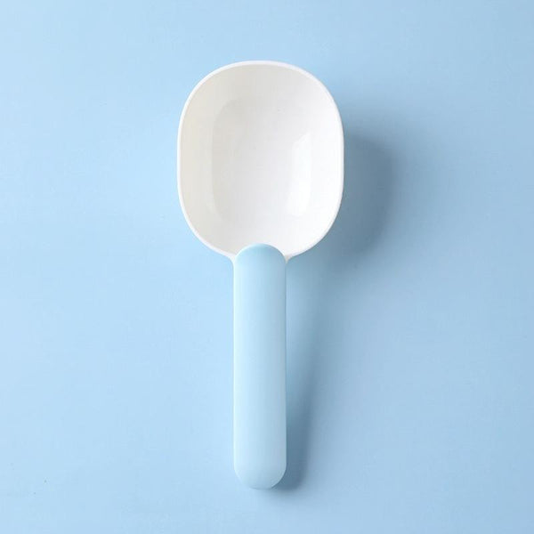 Keep your pet's food fresh and your hands clean with this handy dual-purpose cat and dog food spoon. Made from durable, easy-to-clean ABS plastic, this scoop features an integrated bag clip to seal pet food bags, preventing spills and maintaining freshness. The comfortable, rounded handle provides a secure grip, while the integrated hanging hook allows for convenient storage. Perfect for serving both wet and dry food, this practical and stylish spoon is a must-have for any pet owner. Approximate size: 20x8x4cm. Weight: 46g. Available in a clean white and blue colour combination.