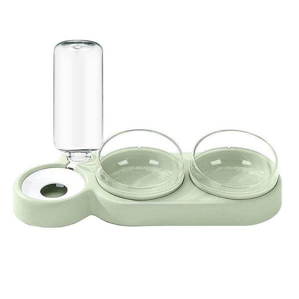 Cat 3-in-1 Auto Water Dispenser & Tilt Food Bowl (Green)
