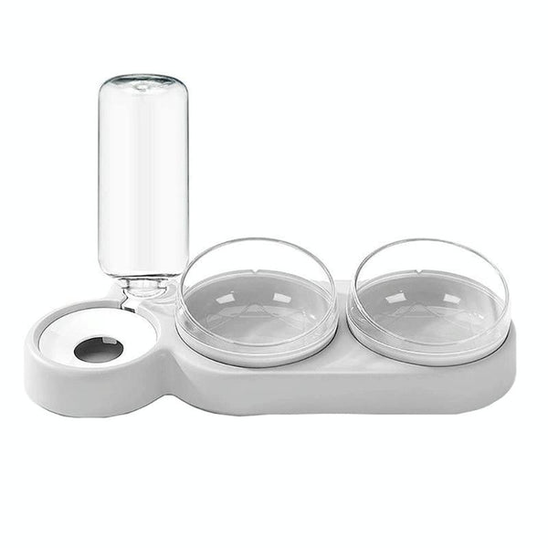 Cat 3-in-1 Auto Water & Food Bowl Grey - Anti-Spill, Tilted