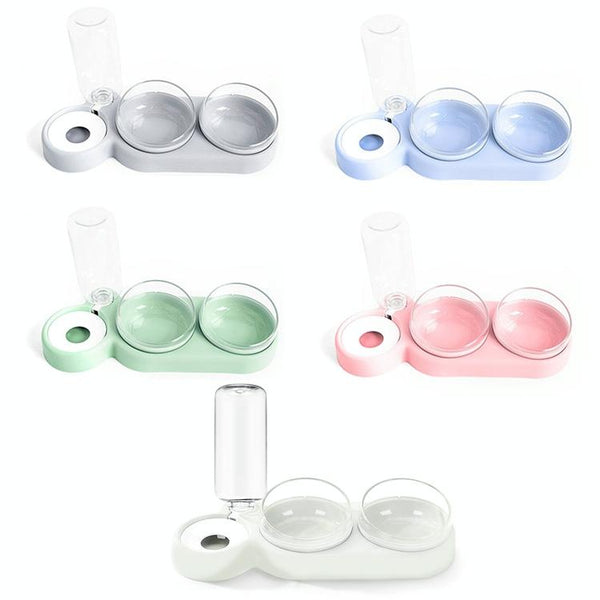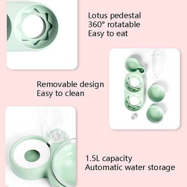 Keep your furry friend happy and hydrated with this clever automatic pet feeder and water dispenser. This dual-purpose pet bowl features a 500ml water bottle that automatically refills the water bowl, ensuring a constant supply of fresh water. The separate food bowl is perfect for dry kibble or wet food. Designed with a 15° tilt, this elevated pet bowl promotes comfortable eating and reduces strain on your pet's neck. The rotating double bowl design allows for easy access, while the detachable components make cleaning a breeze. Suitable for both cats and dogs. Made from durable PP, PET, and AS materials. Approximate dimensions: Feeder 38cm x 13.5cm x 9.5cm, Bowl Diameter 9.5cm, Water Bottle 19cm x 9.5cm.